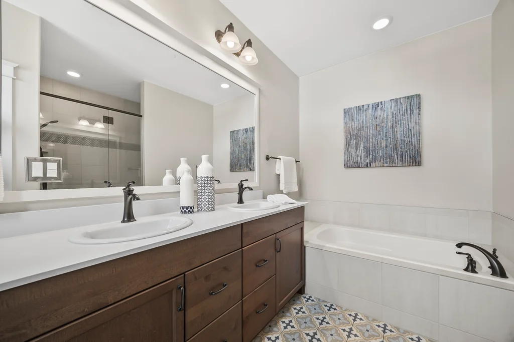 - Primary suite with walk-in closet, double sinks, updated fixtures